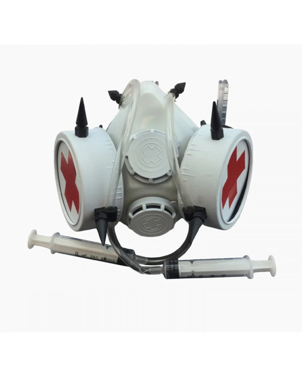 - Extravagante Cosplay & Rollenspiel Halbmaske mit Schläuchen & 2 Kanülen