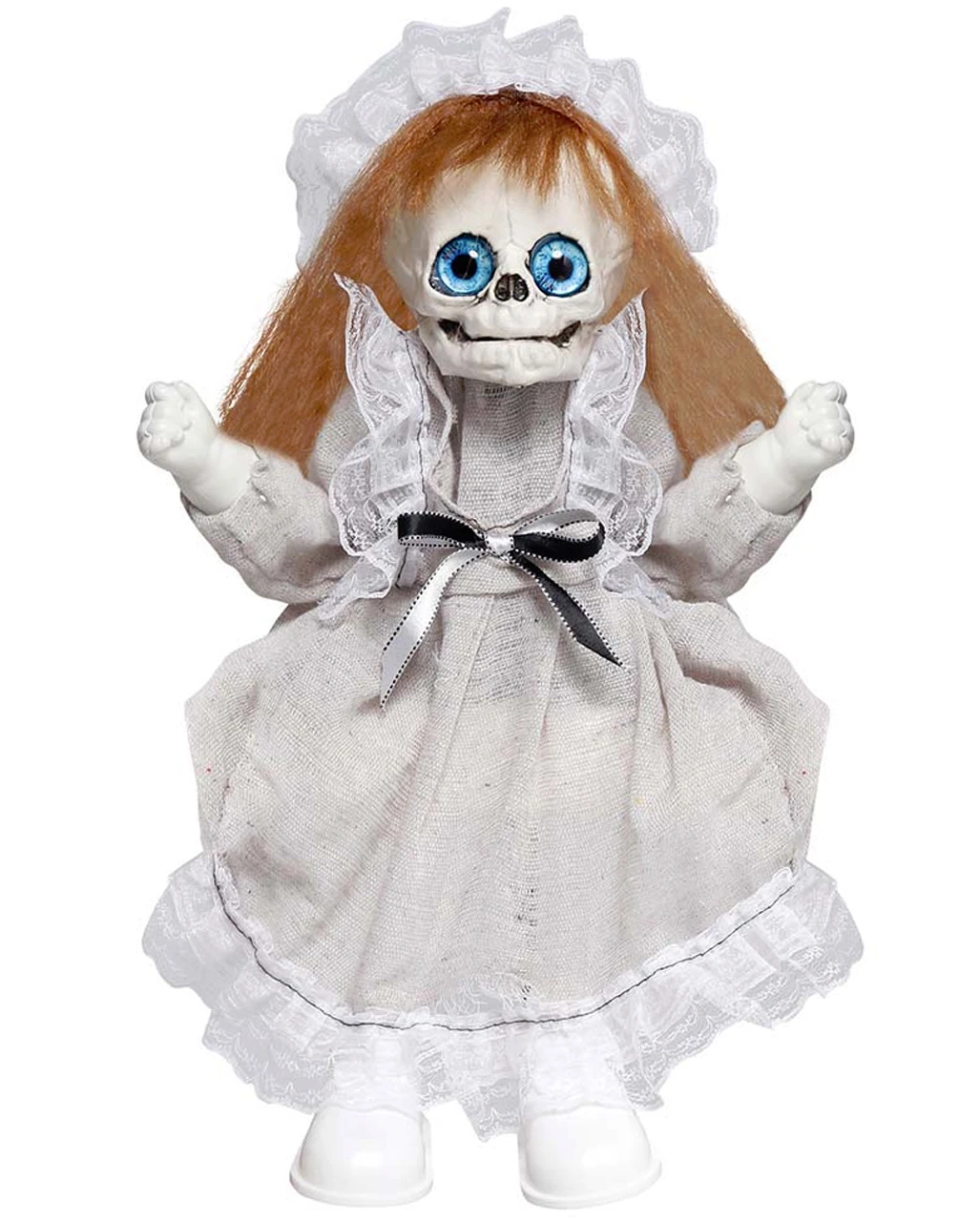 Das Gartenstecker Skelett Püppchen gibt deinem Haus eine schaurigen Touch. Ihre blauen Augen funkeln so schön und das Kleidchen sieht wirklich sehr adrett aus. Wie hypnotisch wirken sie auf die vorbeiziehenden Heerscharen an Geistern und Vampiren. Mal sehen, ob ihnen das zum Verhängnis wird. Setz das liebliche Deko Horror Püppchen in den Blumentopf, auf den Deko Kürbis oder zwischen die Rosensträucher. Ihren lieblich-schaurigen Anblick werden deine Partygäste so schnell sicher nicht vergessen.