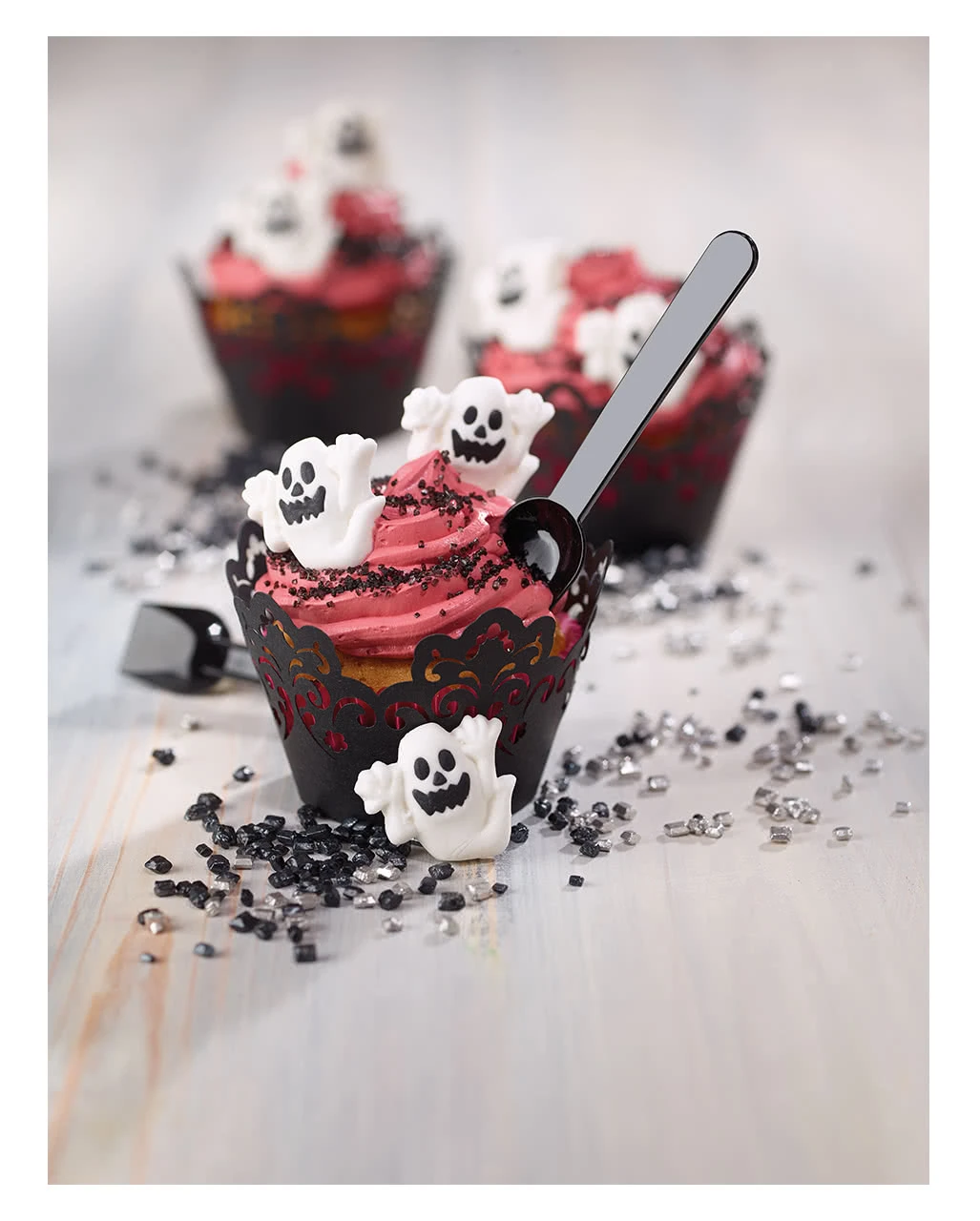Die essbare Geister Zuckerdekoration sind eine tolle Idee um Cupcakes, Süßwaren, Kekse & Kuchen zu verzieren. Lasse deiner dekorativen Ader beim Backen an Karneval & Themen-Party freien Lauf.