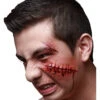 Schminke dich zu Halloween und Fasching als Unfallopfer mit frisch vernähter Wunde, die am Aufplatzen ist. Was gibt es Schlimmeres, als eine frisch genähte Wunde die wieder aufzureißen droht? Mit der Latexapplikation einer genähten Wunde, kannst du dich als Unfallopfer oder als letzter Überlebender aus einem Slasher-Film à la „Freitag der 13.“ und „Halloween“ schminken.