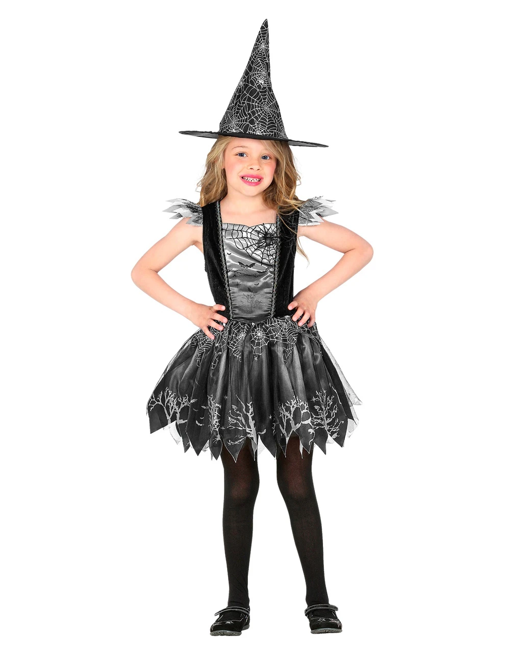 Im nächtlichen Wald treiben sich allerhand mystische Wesen herum. Sie ernähren sich von den Düften des Waldes und helfen unerkannt jedem Pilzsammler dabei, seinen Weg sicher nach Hause zu finden. Kostümiere dich mit unserem Hexen Mädchen Kostüm und werde zur schillernden Zauberfrau. Unser glänzendes Spinnenhexe Kinderkostüm kommt mit Spinnweben, Fledermäusen und einem Zauberwald als Motiv,. Das sorgt auf jeder Kostümparty für Staunen. Hexenkostüm für Mädchen kommt natürlich mit einem passenden Hexenhut. Nun fehlt nur noch dein magischer Besen…