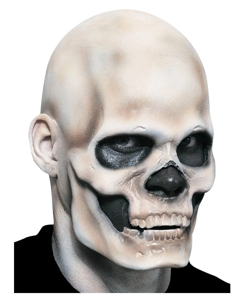 Die weiße Glatzenfolie ist aus weichem Latex und kann einfach mit Hautkleber an deinem Kopf befestigt werden. Die weiße Glatzenfolie mit extra dünnen Rändern wird über den Kopf gestülpt und nach Bedarf zugeschnitten. Bei langen Haaren empfiehlt es sich, diese zuvor mit einem Perückenstrumpf oder Haargel zu bändigen. Die Übergänge zur Haut werden mit dem Mastix Hautkleber groß fixiert. Die Ränder und Übergänge, jetzt am besten noch mit Flüssiglatex bestreichen. Damit kaschierst du die Übergänge und sorgst für zusätzlichen Halt der Glatzenfolie. Um die Kontraste zu deiner natürlichen Hautfarbe verschwinden zu lassen, schminkst du dich am einfachsten mit dem Aquacolor Weiss 30ml. Den bleichen Glatzkopf kannst du perfekt zu Verkleidungen wie Skelett, Sensenmann oder Alien kombinieren.