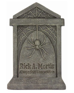 Künstlich angelegte Friedhöfe sind eine sehr beliebte Horror Deko – ganz egal ob bei der Indoor Halloween Party oder als gruselige Outdoor Gartendeko. Der Grabstein mit Spinnennetz & Spinne ist somit ein Allrounder und rundet jeden Halloween Friedhof ab. Der Halloween Grabstein mit „Rick A. Mortis“ Inschrift ist defintiv ein Blickfang und lockt sicherlich ganz viele Untote an.