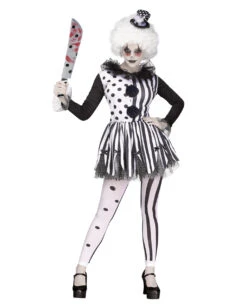 Schwarz-weißes Clownskostüm für Damen zu Halloween