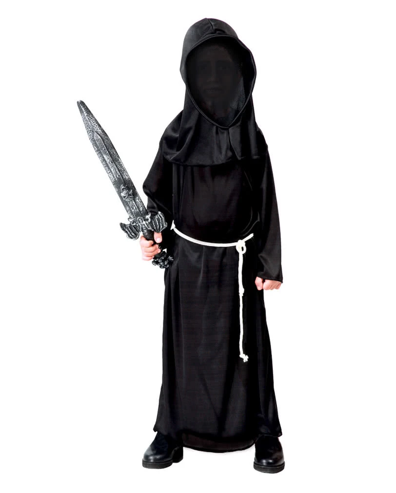 Das Kinderkostüm Phantom der Dunkelheit besteht aus einer langen schwarzen Kutte, die mit der schwarzer Haube mit durchsehbaren Frontbereich und der silbernen Kordel kombiniert wird. Um den gruseligen Anblick noch zu verstärken empfehlen wir ein Antikes Totenschädelschwert und das Fasching Make Up Set für Kinder.