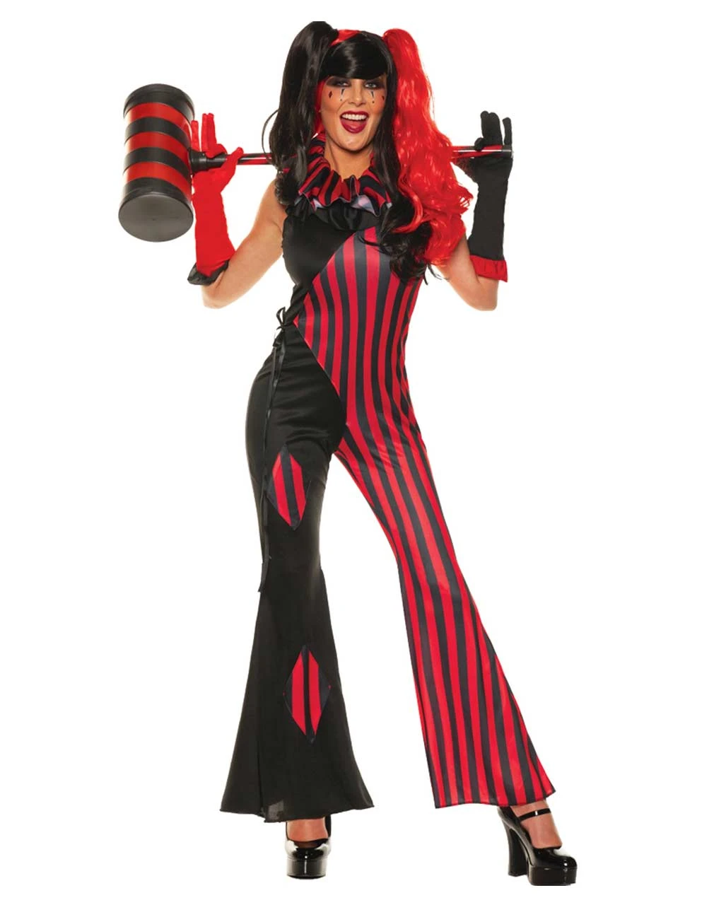 Das Misfit Harlekin Damenkostüm besteht aus einem schwarzroten Harlekin Jumpsuit, einem Paar Handschuhe und einem Harlekinkragen. Das Faschingskostüm für Frauen ist ärmellos und zeigt etwas Haut. Somit ist es perfekt für deinen sexy Auftritt als Harlekin Lady. Die Kostümierung ist bis Größe 46 erhältlich und super bequem! Entdecke auch unseren Aufblasbarer Harley Quinn Hammer als Spielzeugwaffe für unheimliche Horror-Clown Kostüme!