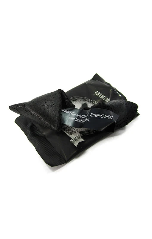 Die Verpackung des schwarzen Pechkekses mit Spruchbotschaft ist mit der Illustration einer schwarzen Katze, eines Splatter-Teddys oder zwei unterschiedlicher Teufelchen versehen. Der Keks selbst schmeckt knusprig und enthält eine bittersüße Nachricht für seinen Konsumenten. An Karneval kannst du den Keks deinen Gästen ideal im Bonbon Schüssel Halter Jason anbieten und dazu noch ein paar Haribo Vampire Fruchtgummi servieren.