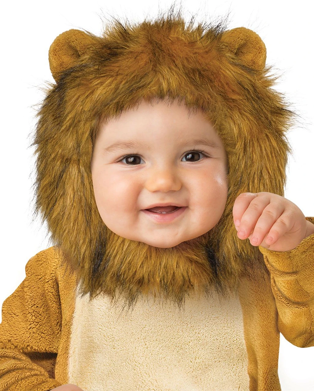 Das Plüsch Löwe Babykostüm macht dem König der Löwen alle Ehre und zeigt dem Rudel, wer der Herr im Haus ist. Das Baby Tierkostüm besteht aus einem kuschligen Baby Jumpsuit in Braun/Beige und einer abnehmbaren Mütze mit wilder Löwenmähne. Der Löwen Overall hat zudem angenähte Füße und einen Löwenschwanz. Für einfaches An- und Ausziehen hat die Kleinkinder Tierverkleidung Druckknöpfe an der Innenseite der Beine. Wie wäre es für die Geschwister mit einem Funky Monkey Äffchen Babykostüm oder einem Tiger Kleinkinderkostüm?