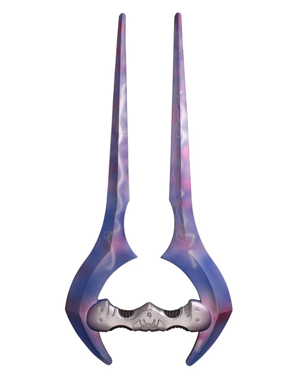 Die SciFi Energieschwert Schaumstoff Waffe besticht durch ihre futuristische Optik. Geformt wie ein Science-Fiction-Raumschiff, stellen die violetten „Schneiden“ die Klingen der LARP-Waffe dar. Der silberne Griff des Halloween-Kostümaccessoires liegt angenehm in der Hand. Durch das verwendete Material – Fiberglaskern mit Schaumstoff – eignet sich das Science-Fiction-Schwert perfekt für heroische Schlachten, ist dabei aber völlig ungefährlich. Noch mehr SciFi-Waffen wie das Blaues LED Tri-Saber Lichtschwert mit Sound und den Halo Nadelwerfer Master Chief haben wir ebenfalls im Karneval-Universe.de!