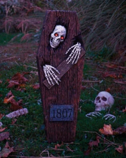 Skelett aus dem Sarg ausbrechend mit LED Augen