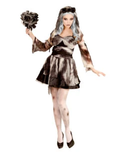 Das Totenbraut Kostüm mit Schleier macht dich zur romantisch veranlagten Zombie Braut, die an Halloween oder Fasching ihr Glück sucht. Ein schmucker Dämon, ein blutdurstiger Vampir oder ein anderer Zombie, der ihre Vorliebe für Gehirn teilt. Das wäre fein. Und sicher wird der nächste Untote auch nicht lange auf sich warten lassen. Wenn du als süße Zombie Braut zur Halloween Party gehst, werden die unsterblichen Verehrer schon Schlange stehen, um mit dir zu tanzen.