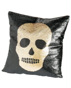 Lieferumfang: 1 x Totenschädel Wendepailletten Kissen Schwarz Gold
