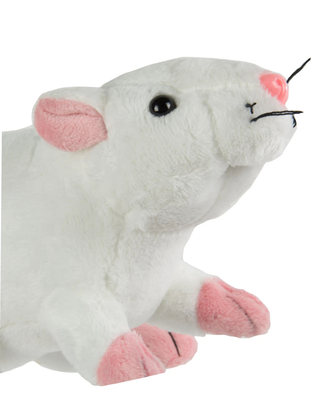 Wofür Du dieses süße Ding auch verwendest, die Weiße Plüschratte 19cm ist einer echten Ratte richtig genial nachempfunden. Die rosa Rattenpfötchen, der rosafarbene Schwanz und das ebenfalls rosafarbene Innenteil der Öhrchen werden ergänzt durch das weiße kuschelige Plüschfell. Mit ihren schwarzen Knopfaugen schaut sie einen so lieb an, dass man sie sofort knuddeln möchte. Alternativ haben wir auch noch andere kuschelig gruselige Freunde, wie die Schwarze Plüsch Spinne 18cm im Angebot.