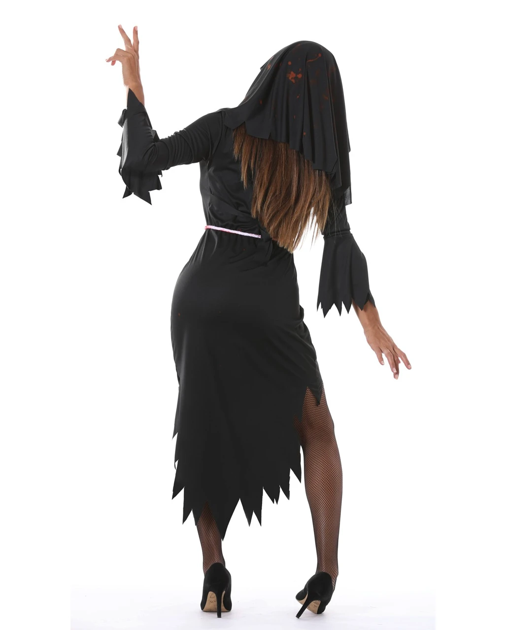 Mit dem Zombie Klosterschwester Kostüm kannst du gemeinsam mit dem Zombie Priester Kostüm & dem Zombie Bischof Kostüm die Halloween Party & den Zombie Walk besuchen. Das schwarze Zombiekleid ist der Klostertracht nachempfunden – aber nicht so prüde! Das Horror Nonnen Gewand hat lange Ärmel, ist fransig & sexy kurz mit einer blutigen Bauchkordel sowie blutverschmiertem Kragen & einer Nonnen Haube mit Gummizug.